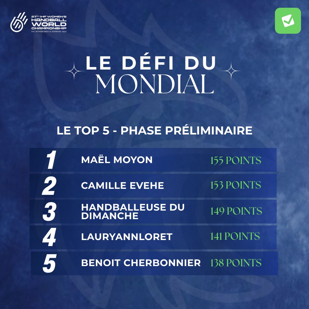 Du 26 novembre au 14 décembre, supporters, licenciés et passionnés de handball sont invités à pronostiquer les résultats des rencontres, cumuler des points et tenter de décrocher une place sur le podium. Une occasion ludique de vivre la compétition autrement et de challenger ses talents de pronostiqueur tout au long du Mondial !