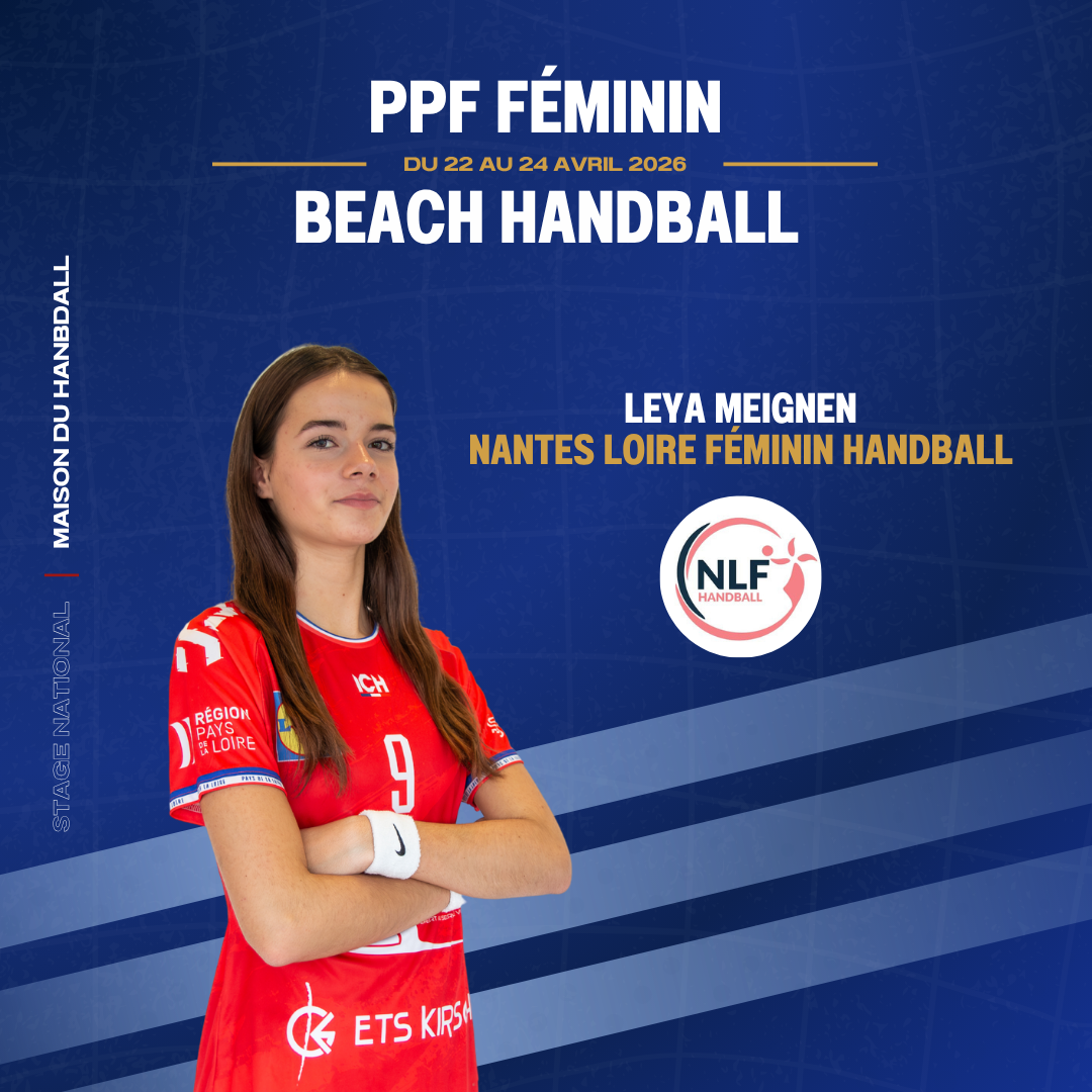 Du 22 au 24 avril 2026, Leya MEIGNEN, joueuse au Nantes Loire Féminin Handball et poliste, est sélectionnée pour le stage national féminin de Beach Handball.