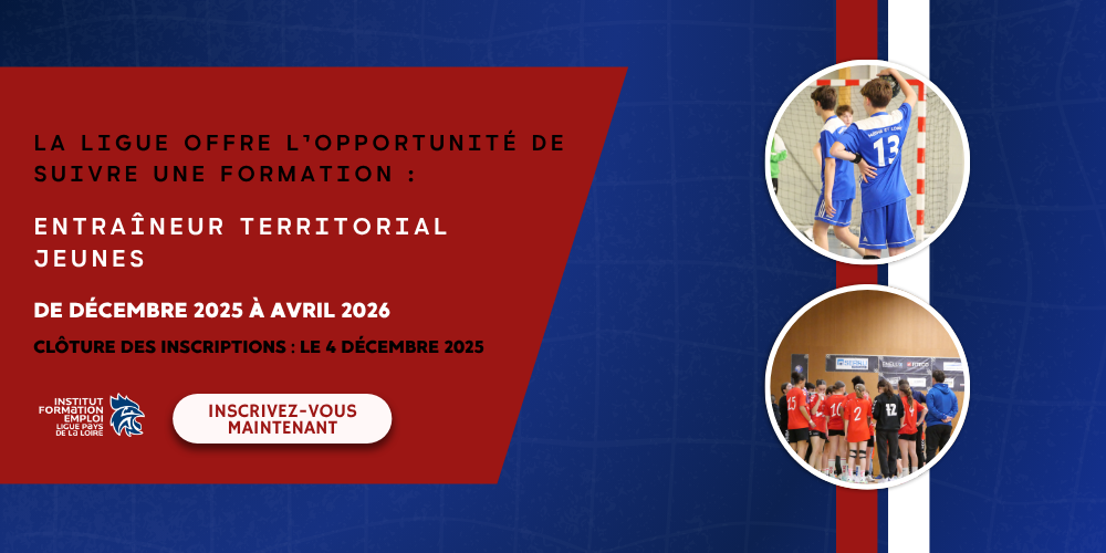 La Ligue de Handball des Pays de la Loire, via son Institut de Formation, propose la formation « Entraîneur territorial jeunes », destinée à tous ceux qui souhaitent s’investir dans l’encadrement des équipes jeunes de leur club.
