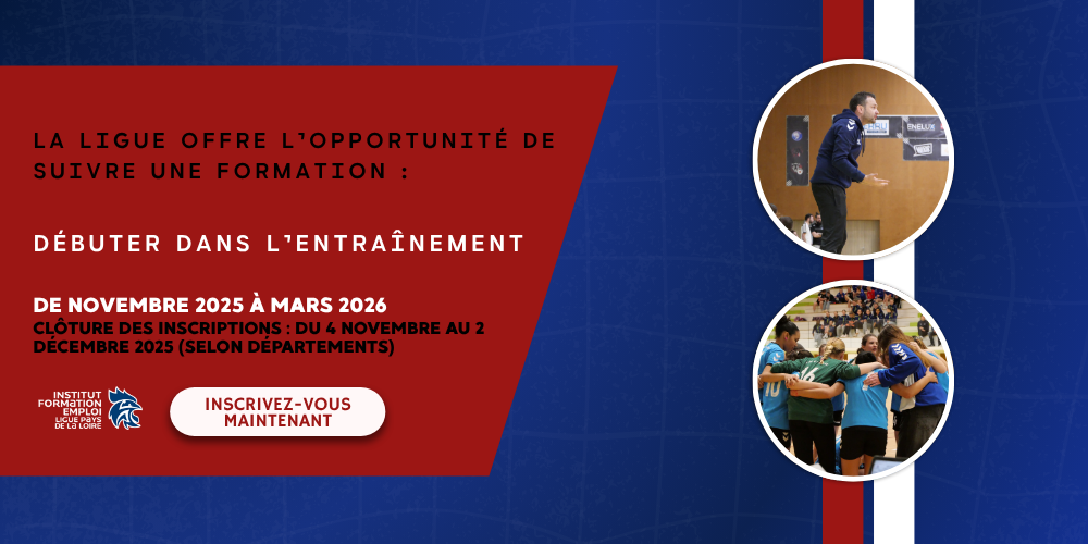 La Ligue de Handball des Pays de la Loire, via son Institut de Formation, propose la formation “Débuter dans l’Entraînement”, destinée à tous ceux qui souhaitent encadrer des groupes et découvrir le rôle d’entraîneur.