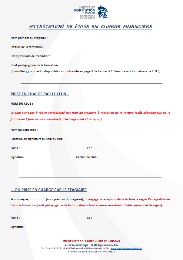 Retrouvez le règlement intérieur ITFE des Pays de la Loire :