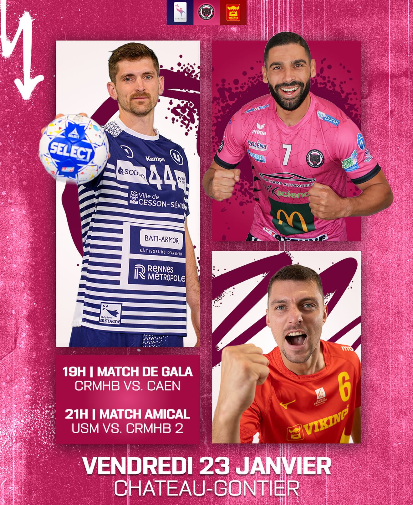 L’Union Sud Mayenne organise une soirée de gala de Haut Niveau. Au programme : Cesson Rennes (Liqui Moly Starligue) face aux Vikings de Caen (Proligue) à 19h au Complexe du Pressoiras de Château-Gontier. Pour terminer la soirée, l’équipe de N1 de l’USM affrontera le centre de formation de Cesson Rennes à 21h.