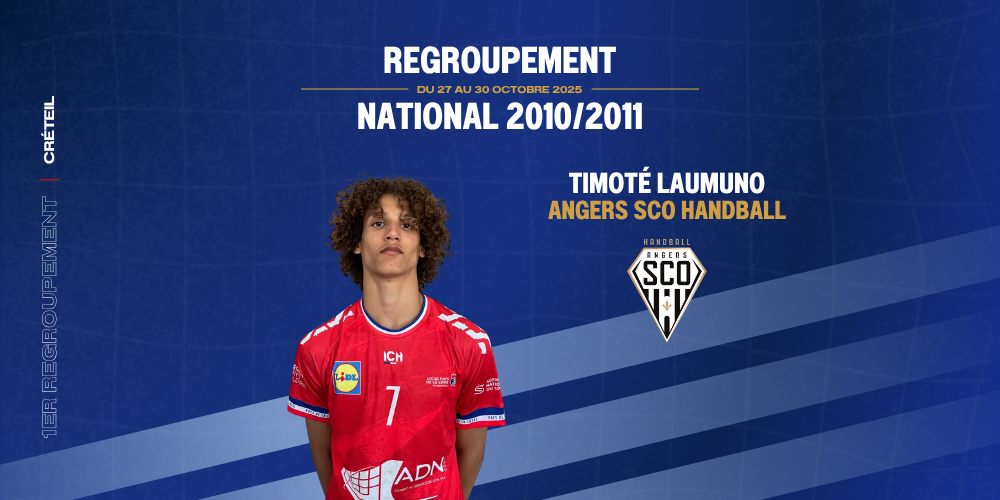 Félicitations à Timoté LAUMUNO, joueur du Pôle Espoirs des Pays de la Loire et licencié au SCO Handball Association, pour sa sélection.